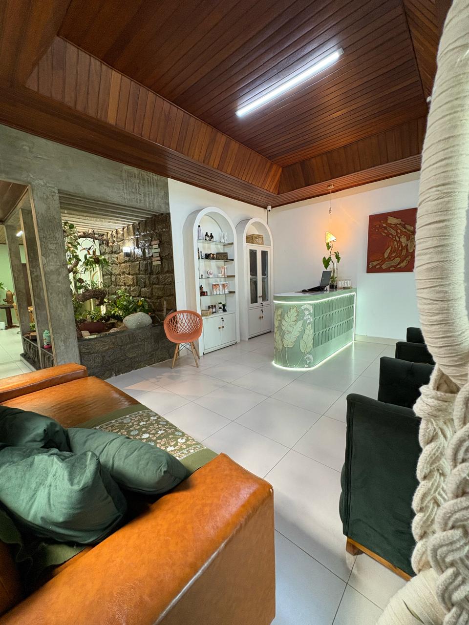 Materiais naturais e texturas que acalmam — um refúgio dentro do salão.